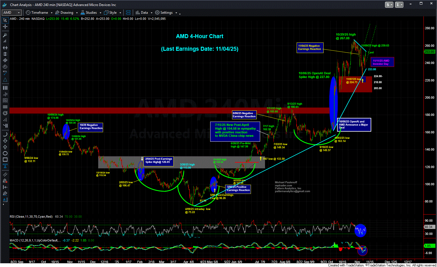 Fast-forward to this AM, we find AMD trading at 253.70 after Lisa Sue's 24-hour marketing campaign. My attached 4-Hour chart shows the price structure pushing up against the resistance line from the ATH at 267.08 (10/29/25) that cuts across the price axis in the vicinity of 254.00, which if (when) taken out, will open a higher price path to revist the ATH-Zone from 262 to 267, en route to 296-300...