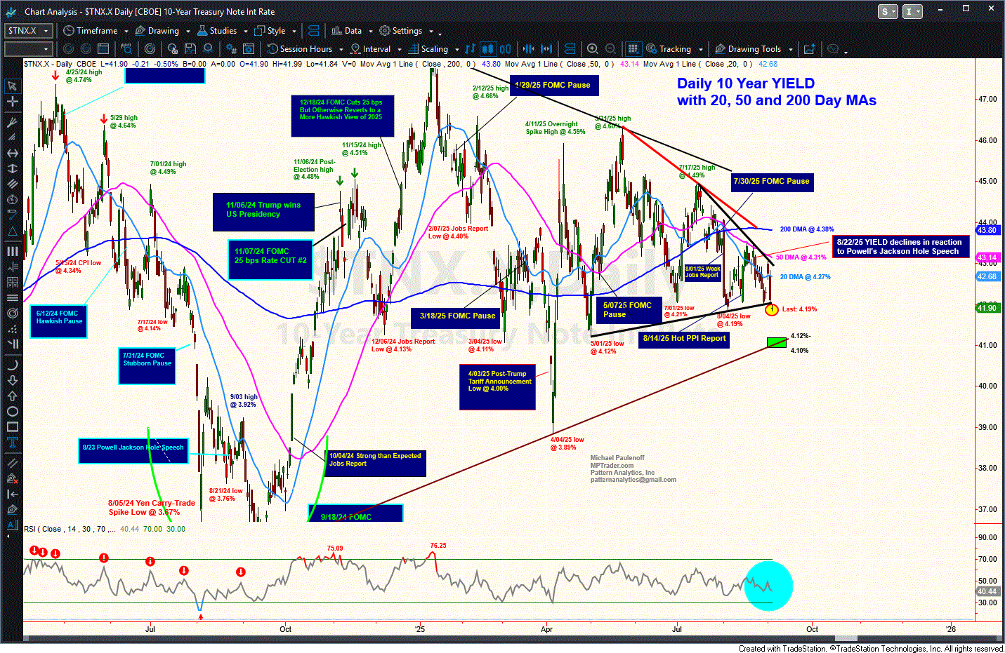 Good Thursday Morning, MPTraders! September 4, 2025-- Pre-Market Update: It's all about Economic data in general, and tomorrow's Jobs Report in particular, for investors during the upcoming 24 hours. The data released this morning (after yesterday's lower-than-expected JOLTS report and stale Beige Book) tilts toward creeping weakness in the U.S. economy, and as such, more pressure on Powell to cut the Fed funds rate 25 bps in the September 17th FOMC meeting. That said, tomorrow's monthly Government Employment Report is the Big Kahuna that will move markets...