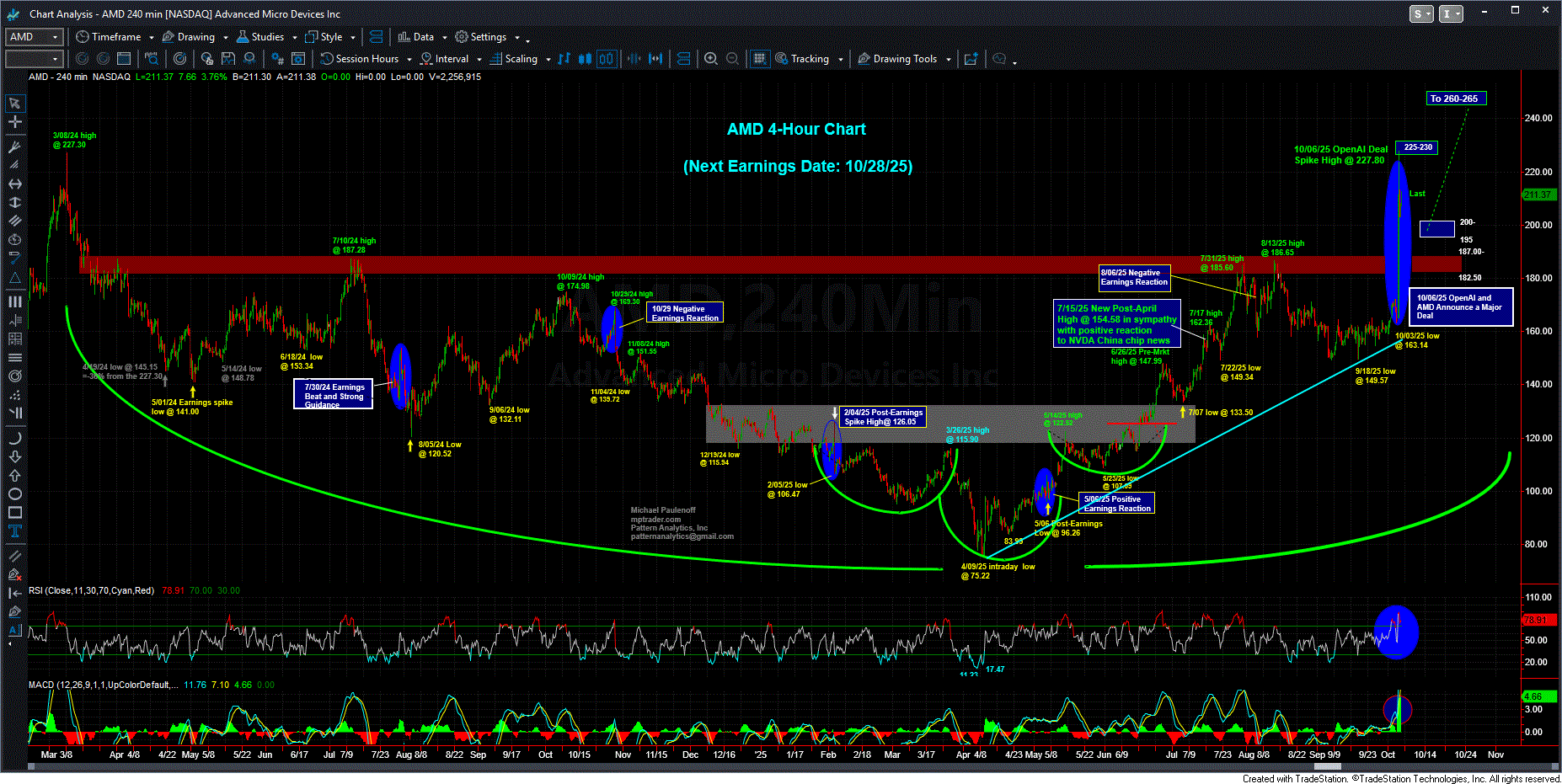 Where might AMD find support on a pullback? My optimal pullback support Target Window is 195 to 200 (see my attached 4-Hour Chart), from where my pattern work "sees" the emergence of a new upleg that projects into a Target Zone of 260 to 265, or another 30% to 35%... Last is 211.95...