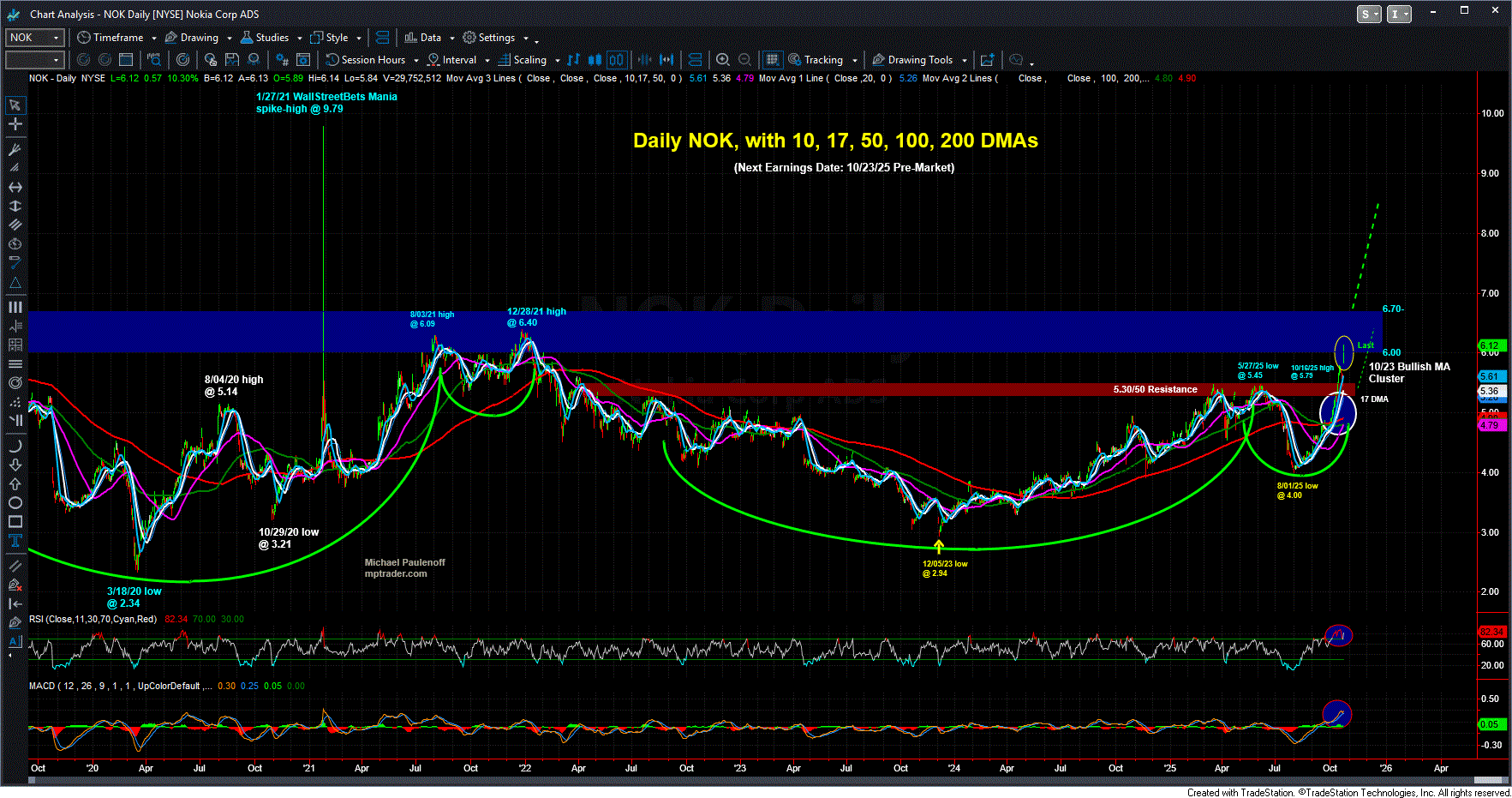 NOK (Nokia) is following the bullish script we discussed yesterday morning:
