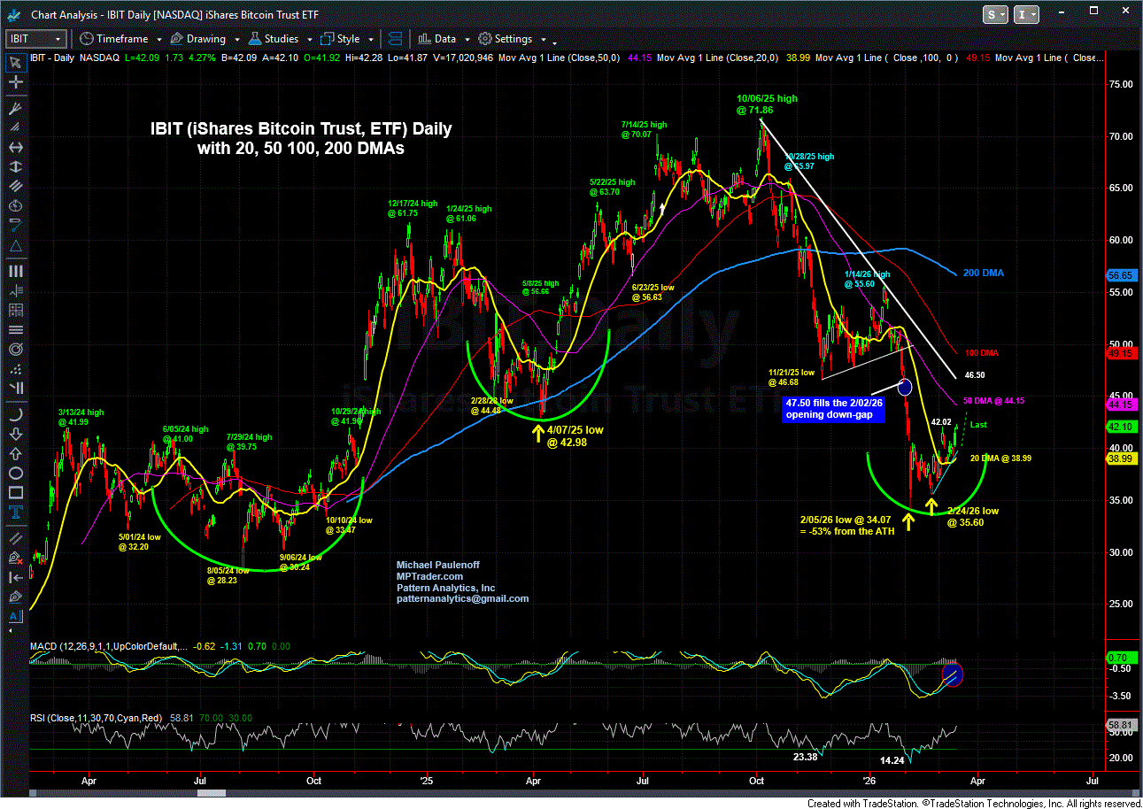 As for IBIT, it has pushed to a 6-week new high this AM above 42.02, and points to a confrontation with the sharply down-sloping 50 DMA, now at 44.15... Last is 42.06...